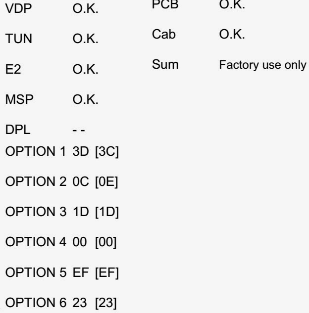 Self Check is also used to automatically check the bus lines and hexadecimal code of the TV set. If the CCU ports have been checked and found to be incorrect or not located then " - - " will appear in place of "O.K.". For more in-depth TV diagnostics use the LUCI interface as listed below.